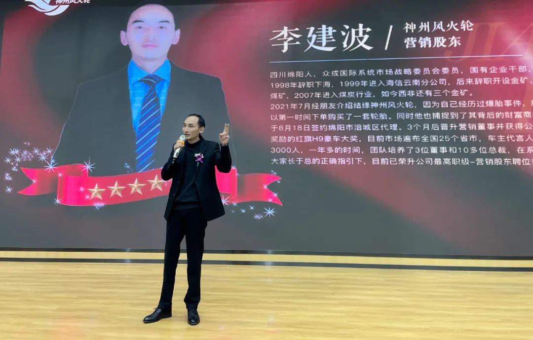 遼寧神州風(fēng)火輪輪胎科技有限公司董事長牛利先生進行講話,董事長通過產(chǎn)品為王、模式為王、數(shù)據(jù)為王、資本為王、團隊為王五大方面展開了深入的討論,加上全方位的營銷政策支持和可觀的利潤空間,充分減少了合作伙伴的后顧之憂。董事長的真知灼見讓大家對未來有了更高的期盼,公司愿以最大的誠意及雄厚的實力,為代理商家人們搭建合作共贏的平臺,加深雙方溝通聯(lián)系,共謀發(fā)展!