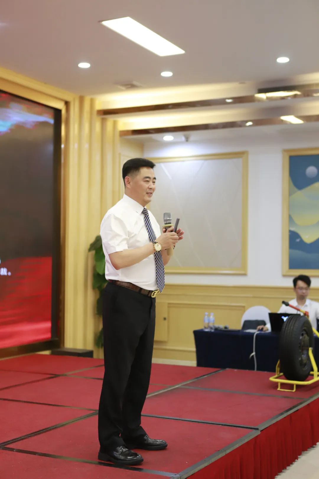 遼寧神州風(fēng)火輪輪胎科技有限公司董事長牛利先生進行講話,董事長通過產(chǎn)品為王、模式為王、數(shù)據(jù)為王、資本為王、團隊為王五大方面展開了深入的講解,在日益內(nèi)卷的市場中有著鮮明的品牌特色,為廣大代理商找到市場突破口,開啟了一條創(chuàng)新破局之路,為行業(yè)品牌立足市場提供了重要參考?,F(xiàn)場引發(fā)參會代理商的頻頻點贊、陣陣掌聲。公司愿以最大的誠意及雄厚的實力,為代理商家人們搭建合作共贏的平臺,加深雙方溝通聯(lián)系,共謀發(fā)展!